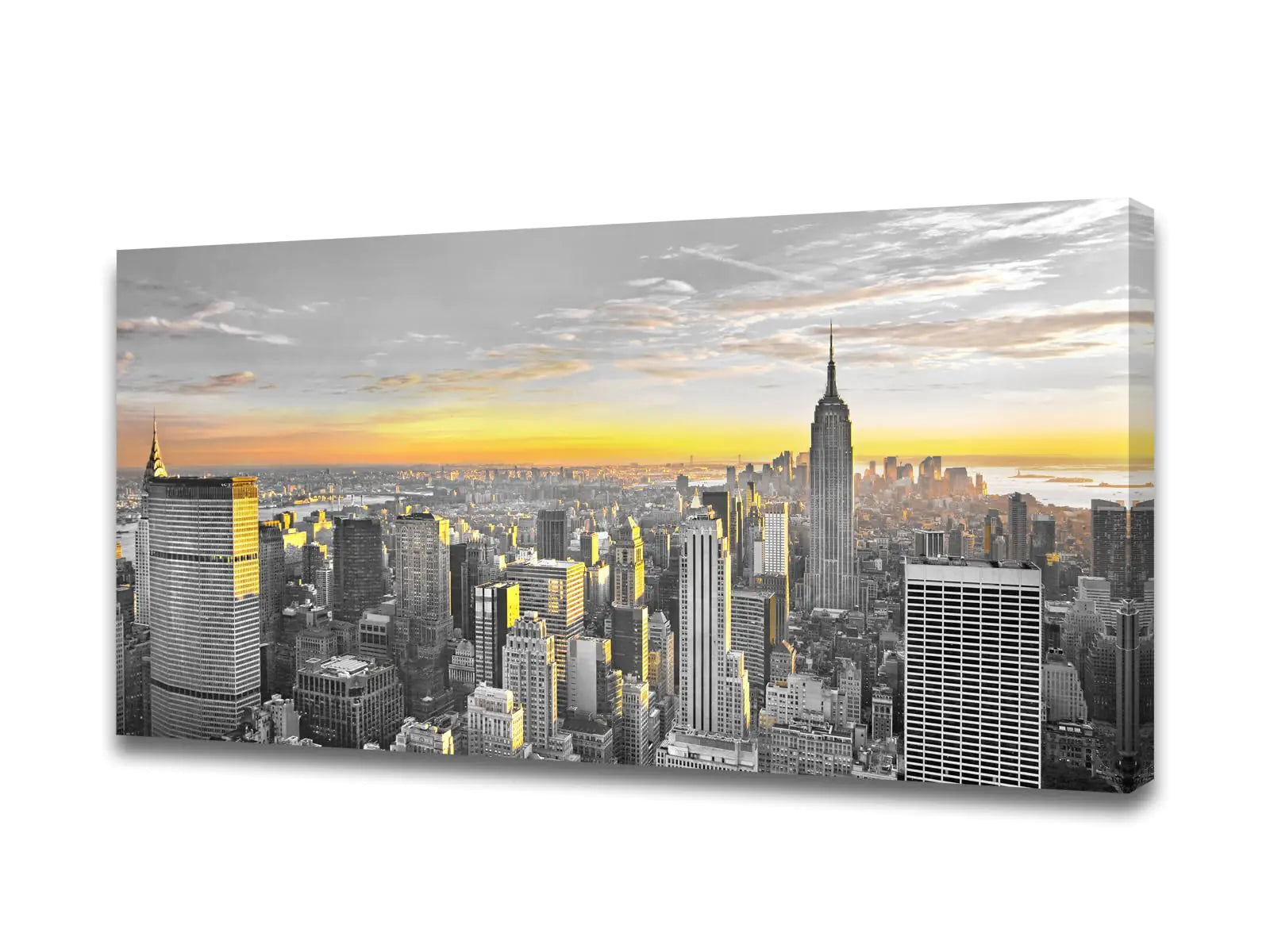 Muolunna BK06375 Wall Art Decor Canvas Print Picture Manhattan panoramic view 1 Panel Golden Sunset Building City Landscape Painting for Living Room Bedroom Office Home Decor Framed Ready to Hang